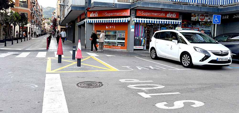 El col·lectiu de taxistes ja ha retirat els cons de taronja llampant que hi van posar al damunt dies després de la instal·lació de les pilones, amb les quals s’hi havien ensopegat alguns vianants.