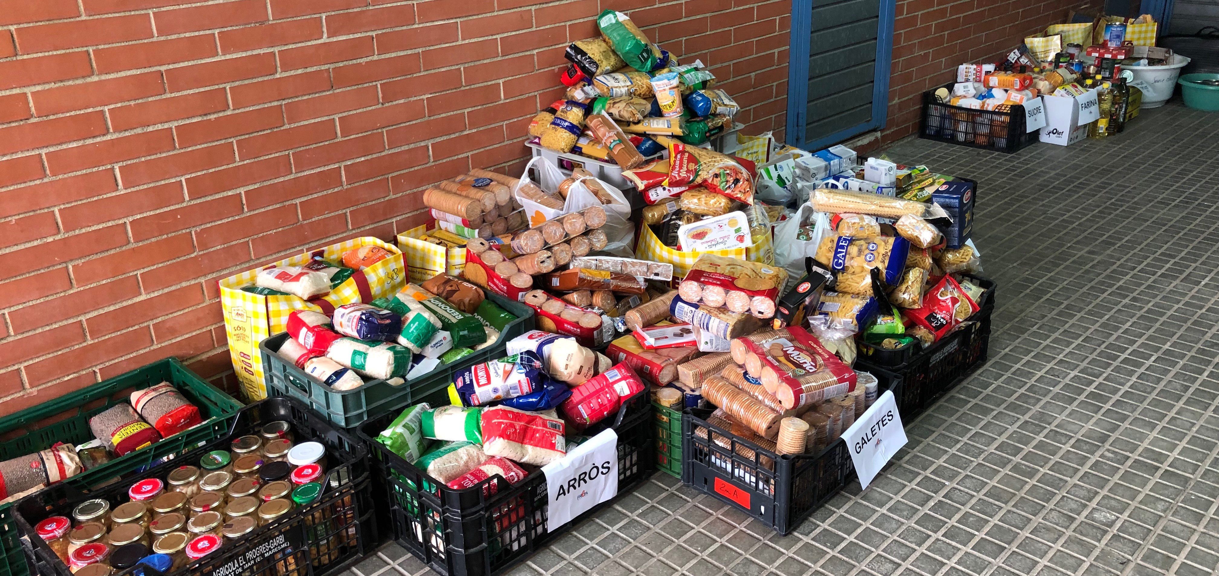 Una tona d’aliments sempre és benvinguda, encara que s’acaba molt ràpid amb la quantitat de gent que ve a buscar-ne. Moltes gràcies als mestres encarregats, als voluntaris de Càritas que van anar-los a recollir i a qui ho va transportat amb la furgoneta… en fi, moltes gràcies a tothom.