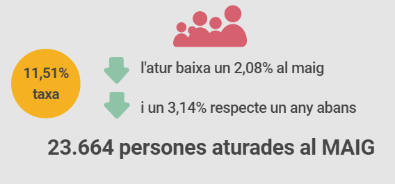 Quart mes consecutiu de baixada de l’atur al Maresme, que al maig s’ha situat en l’11,51%, deixant un nombre absolut d’inscrits a les oficines d’ocupació de 23.664 persones. Segons l’anàlisi fet per l’Observatori de Desenvolupament Local del Consell Comarcal, aquest descens s’ha distribuit entre tots els sectors econòmics i tots els grups d’edat.