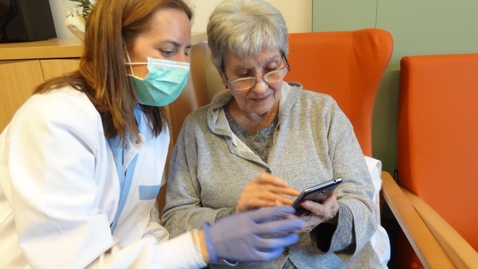 És un sistema nou que hem posat en marxa, durant aquest moment de confinament, perquè els pacients puguin veure a les famílies a través de les pantalles. El fet de poder començar amb aquest sistema ha estat una alegria per a molts.