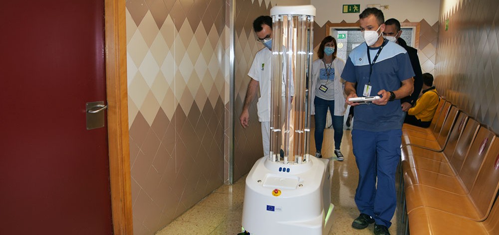 Un robot de llum ultraviolada desinfectarà les habitacions i els quiròfans de l’Hospital de Calella en tan sols 10 minuts, sense exposar als treballadors a cap mena de risc. Es tracta d’un dels 200 robots adquirits per la Unió Europea a l’empresa danesa UVD Robats i que estan entregant a tots els hospitals d’Europa per ajudar-los a fer front a la pandèmia. Aquest autòmat ha de servir per esterilitzar els espais de virus, com el coronavirus SARS-CoV-2, o també de bacteris multiresistents. El personal de neteja del centre sanitari està rebent aquests dies una formació per poder posar en marxa aquest nou sistema de desinfecció.