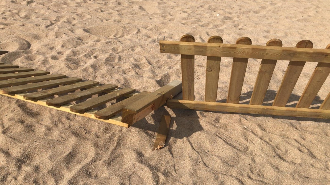 24 hores després de la posada en funcionament l’incivisme ja s’ha acarnissat contra la nova platja de gossos. L’espai reservat als animals del litoral calellenc s’ha llevat aquest matí amb una de les tanques que delimita la zona malmesa. Un o més individus s’han dedicat aquesta mitjanit a trencar el barandat de fusta de la part dreta de la platja. Uns fets que molts usuaris han lamentat assegurant que són més incívics les persones que no pas els peluts.
