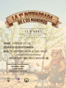L’Os Mandrós, la nova entitat juvenil de Calella, celebrarà la seva primera activitat oberta al públic amb una botifarrada popular el diumenge 12 d’abril, al Passeig Manuel Puigvert, davant del Monument de la Sardana, a partir de les 11:30 h. La jornada també inclourà música amb DJ i altres propostes lúdiques que es concretaran més endavant. Les inscripcions amb preu anticipat, de 7,50 euros per menú, es tancaran el dimecres 1 d’abril. El mateix dia de l’activitat, el preu del menú serà de 10 euros.