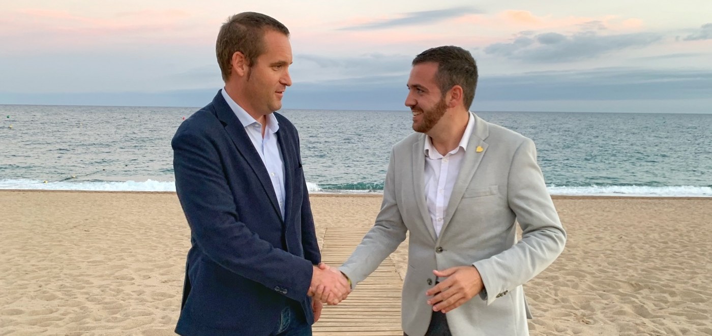 El secretari general de Junts per Catalunya, Jordi Turull, ha acompanyat Buch i Grima en la presentació d’un acord que assegura compleix les expectatives de la gent de Calella.