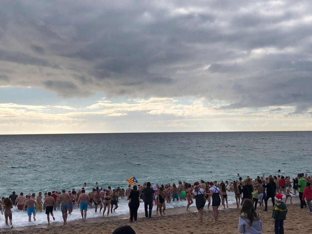 Els de la colla no tinc fred han repartit 504 pulseres de la Banyada Nadalenca. Enguany els nuvols han fet la guitza però no per això els fredolics s’han posat dins l’aigua a 13,5ºC.