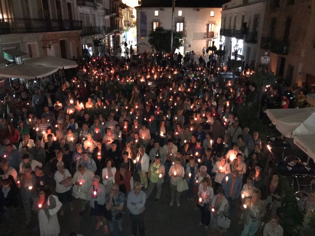 Mig miler de persones s’han concentrat aquest vespre a la plaça de l’Ajuntament amb una espelma, responent d’aquesta manera a la crida que feia avui el Comitè en Defensa del Referèndum i l’Ajuntament de Calella per mostrar el rebuig de la ciutadania a l’empresonament dels presidents de l’Assemblea Nacional Catalana, Jordi Sánchez i del president d’Òmnium Cultural, Jordi Cuixart.
