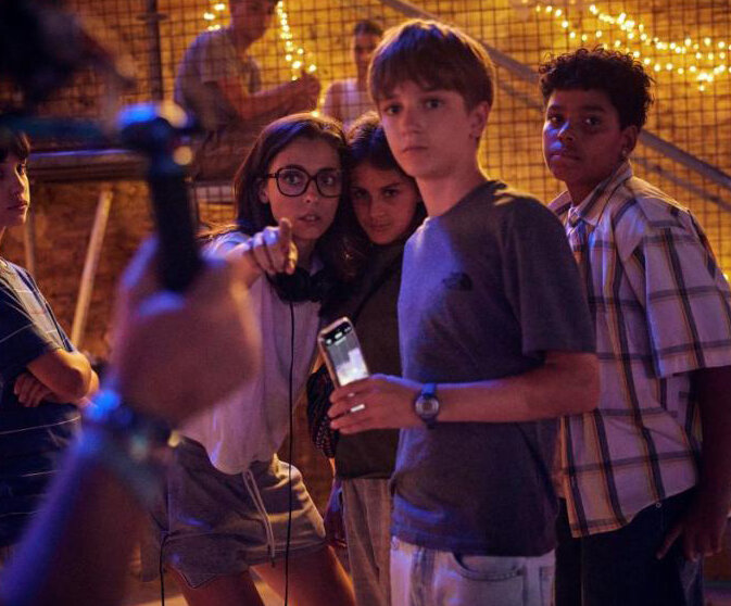 Leticia Dolera amb els actors de “Pubertat” en un moment del rodatge.