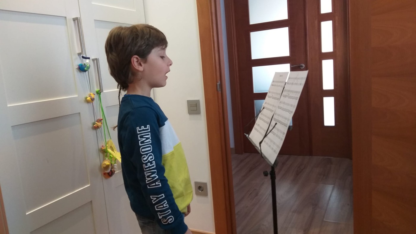 Ho farem des de casa i ho gravarem a la terrassa. Com que estem confinats, així donem una mica d’alegria (…) Estic assajant amb els profes de música, amb l’avi, per Skype o a través dels Hangout.