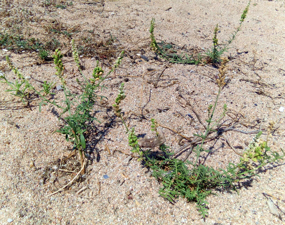 Exemplar de capironat marí (Reseda hookeri) a la platja de les Dunes de Santa Susanna. (Font: Departament de Territori, Habitatge i Transició Ecològica de la Generalitat de Catalunya)