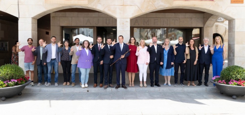 El nou Ajuntament de Calella s’ha fotografiat fent el gest per l’ELA