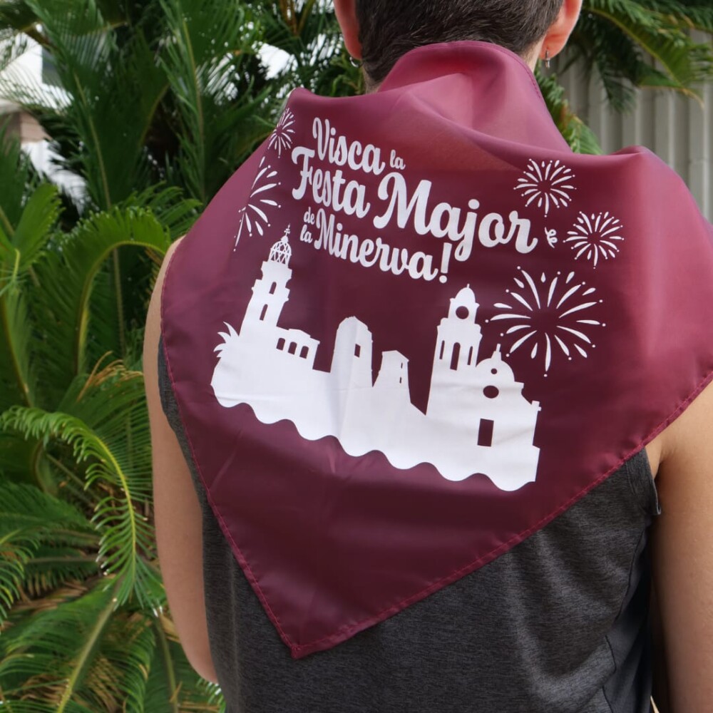 El mocador de la Festa Major de La Minerva, de color grana i estampat de blanc amb l’skyline de Calella, es podrà comprar a l’envelat de Barraques durant les tres nits de concerts. És una iniciativa de la gent del CB Calella i que la resta d’entitats que hi tindran barra també s’han fet seva amb la idea de crear un accessori de roba que tothom pugui portar en els actes que tindran lloc aquests pròxims dies. El preu és de 2 euros, el just per cobrir-ne el cost.