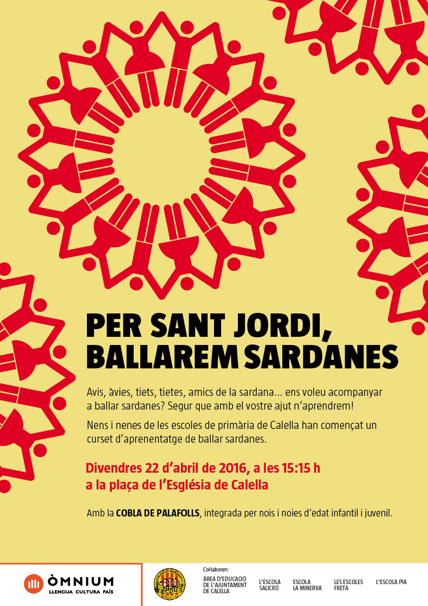 Calella vol continuar promocionant i fomentant la dansa nacional catalana entre els infants de la ciutat. És per això que, per segon any consecutiu i mantenint una de les iniciatives de la Capitalitat de la Sardana, l’Agrupació Sardanista amb la col·laboració de l’Ajuntament de Calella fan cursets a les escoles de primària de la ciutat. Per posar-hi el colofó, la secció Montnegre d’Òmnium Cultural organitza una ballada de sardanes participada pels escolars, i a la que hi conviden familiars que vulguin ensenyar-ne. Serà la vigília de Sant Jordi, el 22 d’abril a la Plaça de l’Església.