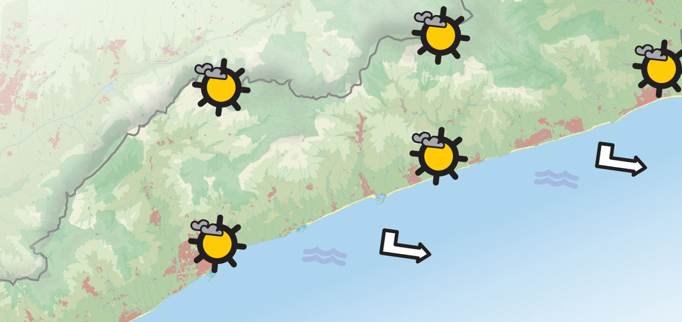 Les ràfegues de vent poden ser de fins a 90 quilòmetres per hora sobretot al Pirineu i Prepirineu. A la costa del Maresme la situació serà més tranquil·la al llarg del dia d’avui amb vents que seran moderats. Segons el meteoròleg del Consell Comarcal, Joaquim Serra, al nord de la comarca els vents seran d’entre 40 i 50 quilòmetres per hora. Només al sud, a zones de Tiana, Montgat o el Masnou les ratxes de vent seran més elevades però sense arribar als 70 quilòmetres per hora, que és el punt en què ja es pot considerar com a fort vent.