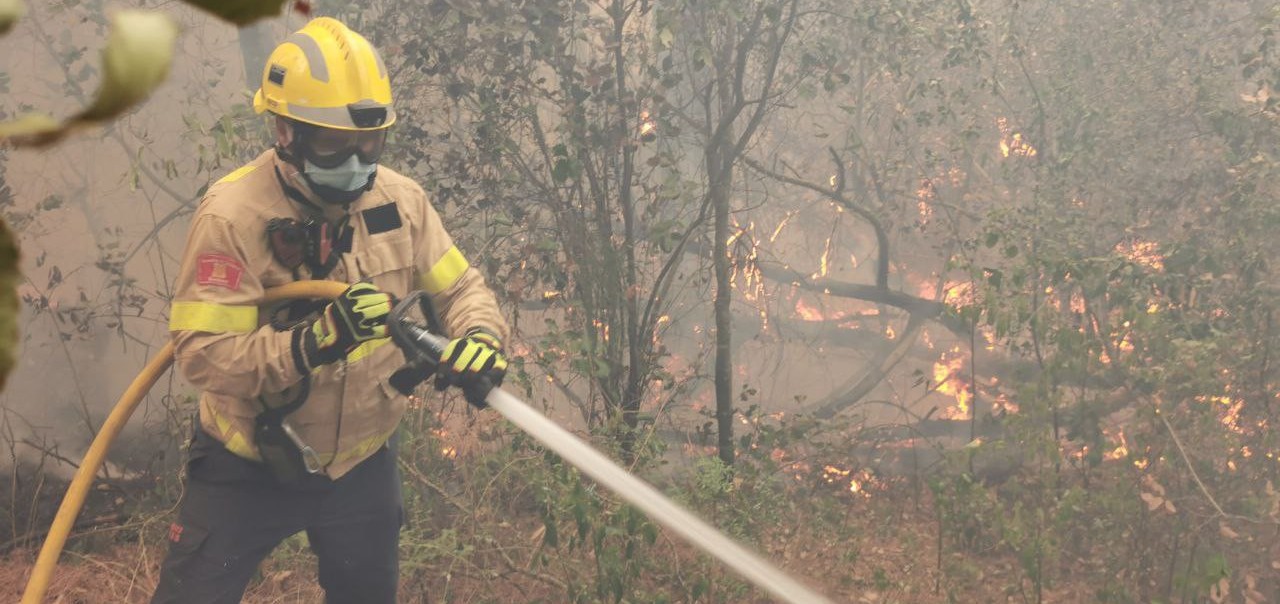 Bomber treballant en les tasques d'extinció de l'incendi del passat 24 de juny a Argentona (Foto: Bombers de la Generalitat)