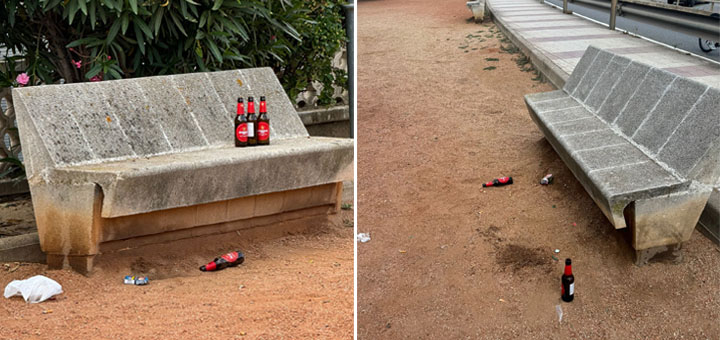 Brutícia i xivarri pels botellots és el que denuncia el veïnat de la Plaça Bernat II. Expliquen que les trobades es produeixen cada cap de setmana i fins a altes hores de la matinada, fent impossible conciliar la son. Així ho han denunciat a Ràdio Calella TV, aportant fotografies de com es troben l’espai l’endemà al matí: ampolles de vidre llançades al terra i al damunt dels bancs de pedra, tot i que al costat mateix hi ha una paperera. És la prova de l’incivisme que volen combatre.
