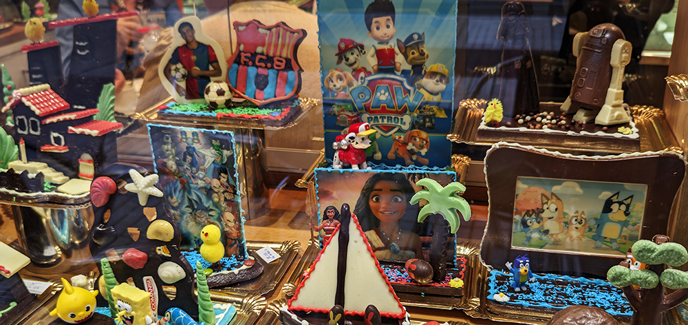 Pel bon moment de forma que passa el Barça, és una de les mones més demanades, amb Lamine Yamal al capdavant. No podia ser d’altra manera perquè un clàssic de cada any. També algunes princeses com la Vaiana, o el Son Goku, que torna amb molta força, l’Stich i l’Spiderman (…) Llavors tenim cotxes, vaixells i camions; i les cases i castells de xocolata, que no es perden mai.