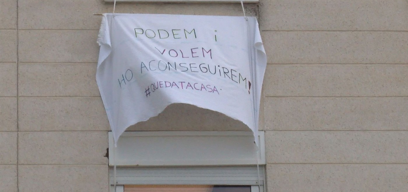Pancarta penjada en una de les finestres de l’hospital