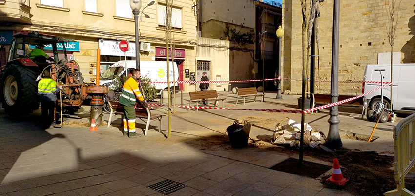 Renovació de la vegetació de la Plaça de l’Església per seguretat perquè exemplars actuals d’om i til·ler estaven molt deteriorats i presentaven un risc evident de caiguda. Les causes del seu mal estat són diverses: des d’una plaga que provocava la desfoliació severa de l’om, fins a una malaltia fúngica destructiva, o senzillament la mala adaptació a les condicions de la plaça.