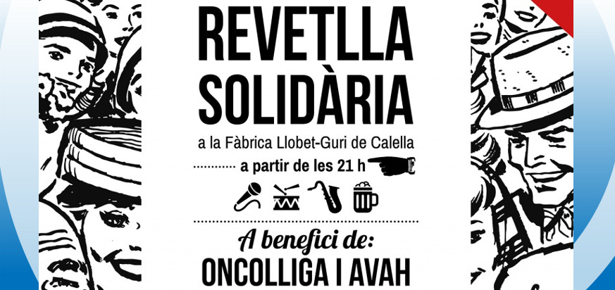 Aquest dissabte, 17 d’octubre, a partir de les nou del vespre, es fa a la Sala Polivalent de la Fàbrica Llobet-Guri, la Revetlla solidària per recaptar fons per al Servei de Suport Immediat a Domicili d’Oncolliga i de l’Associació de Voluntaris i Amics de l’Hospital de Calella.