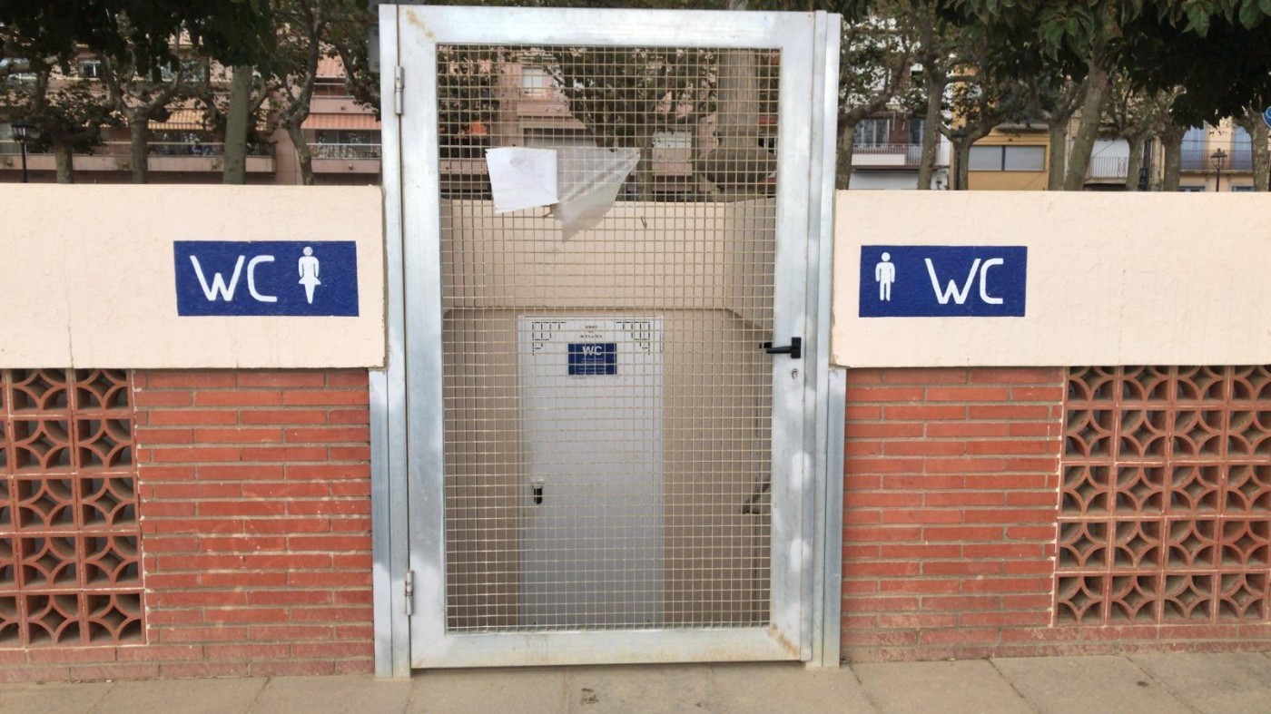 Els lavabos s’abaix es van tancar perquè cada vegada estan en unes condicions més precàries i a més a més hi patíem un vandalisme constant. Vandalisme, no robatoris. En vam posar un de fusta a dalt, al passeig. El que ens vam trobar abans d’ahir és que a l’hora d’anar-los a tancar a les 20.30h, quan es fa l’ultima neteja i es tanquen, doncs havien robat les aixetes dels cinc lavabos.