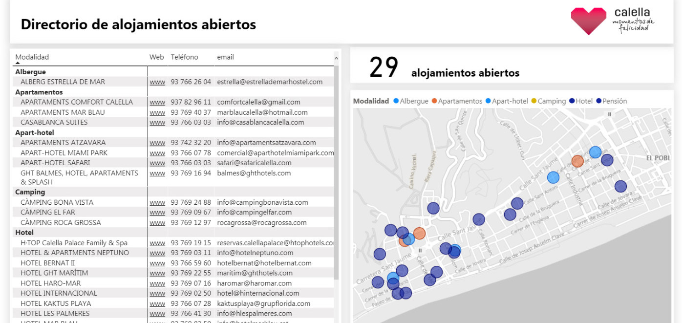 ReOPEN DESTINATION és la plataforma el línia que ha activat l’Ajuntament de Calella per donar informació actualitzada sobre la disponibilitat de l’oferta d’allotjament de la ciutat. Es vol així millorar la informació sobre la destinació davant la incertesa que provoca la Covid-19. L’espai indica quins establiments estan oberts i dona dades sobre la seva ubicació i contacte.