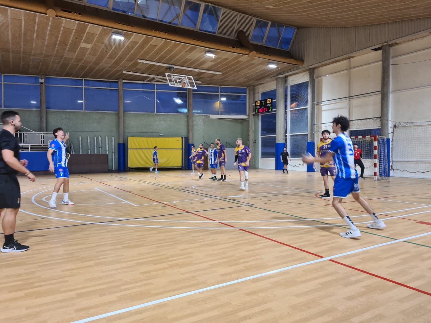 Després d’un inici molt igualat, amb avantatges alterns al marcador, els locals han aconseguit arribar al descans guanyant de dos gols.( 8-8 al minut 20, 13-11 minut 30)