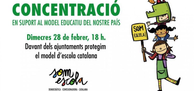 La plataforma Som Escola ha convocat concentracions davant dels ajuntaments d’arreu de Catalunya en defensa de l’escola catalana i del model d’immersió lingüística per avui a les 18:00 h de la tarda.