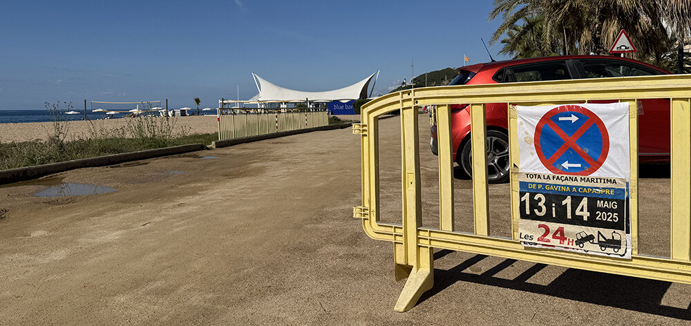 El camí de la platja ha de quedar alliberat de cotxes aparcats i en circulació perquè la màquina anivelladora pugui passar demà per compactar el ferm, molt malmès després de les pluges de març. Fa dies que es va col·locar la senyalització informant de l’actuació que, com a molt, s’allargarà durant 48 hores. Les gairebé 300 places d’aparcament que hi ha en el tram comprès entre la Llar dels Pescadors i la Riera Capaspre quedaran temporalment inoperatives.
