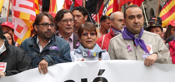 Els líders catalans dels sindicats majoritaris, CCOO i UGT, durant una jornada de vaga. Foto: CCMA