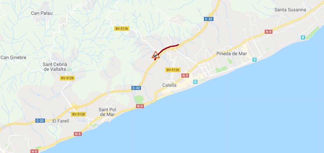 Un accident de trànsit ha provocat el tall de dos carrils a la C-32 al seu pas per Calella. La circulació ha quedat restablerta.