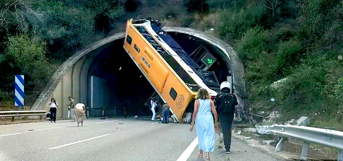 Alerta #PROCICAT per l’accident d’un autobus a la C-32 pk 125,7 a l’entrada tunel a Pineda (Maresme)