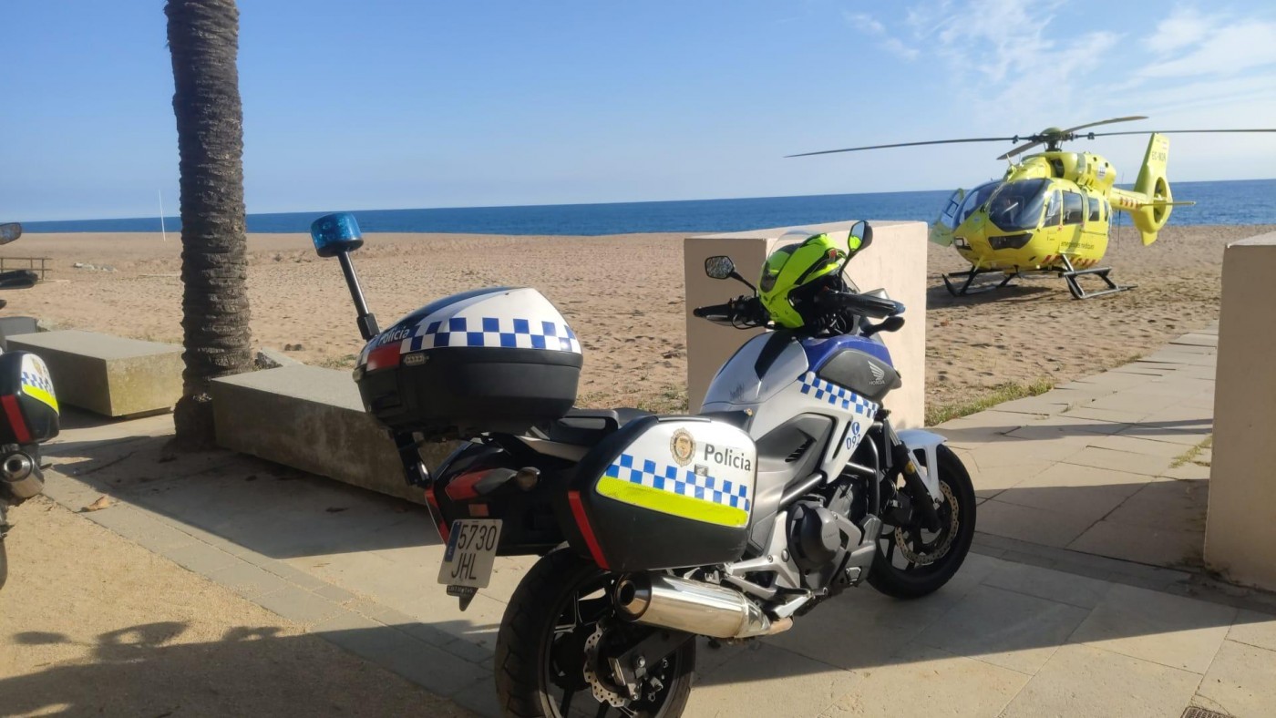 Un helicòpter del SEM ha hagut d’aterrar a la platja de Calella, acompanyat per la policia local, per atendre un veí de Puig de Popa, de 62 anys, amb símptomes d’un possible infart.