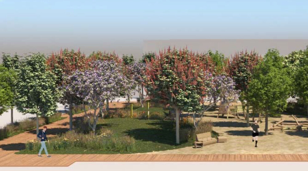 El projecte contempla una nova distribució de l’espai, mantenint l’àrea de jocs infantil però renovant-la. S’hi col·locaran jocs d’equilibri i d’aventura d’estructures naturals i sobre un paviment tou. L’arbrat i la vegetació existent, que ja s’ha començat a retirar, se substituirà per noves espècies autòctones i ben adaptades al nou context d’emergència climàtica, que no necessitin poda i ofereixin una variació cromàtica durant l’any pel canvi d’estacions. Com per exemple, el sapindal de la Xina, el lledoner o l’acàcia del Japó; que alhora crearan zones d’ombra.