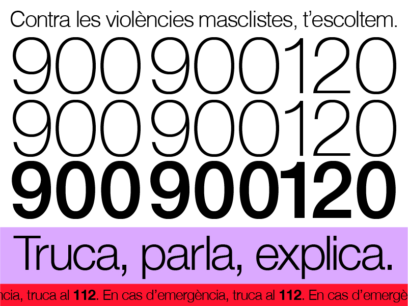 En el que portem d’any 2023 s’han confirmat 14 feminicis a Catalunya que han deixat 7 infants orfes. Davant qualsevol indici o situació de violència masclista cal trucar al telèfon 900 900 120. Hi pot trucar tothom. Aquesta línia és gratuïta, confidencial, no deixa rastre i opera les 24 hores cada dia de l’any en múltiples idiomes. Ofereix atenció psicològica directa, fa un primer assessorament jurídic i fa derivació, si així se sol·licita, als serveis especialitzats que acompanyen les dones en la seva recuperació.