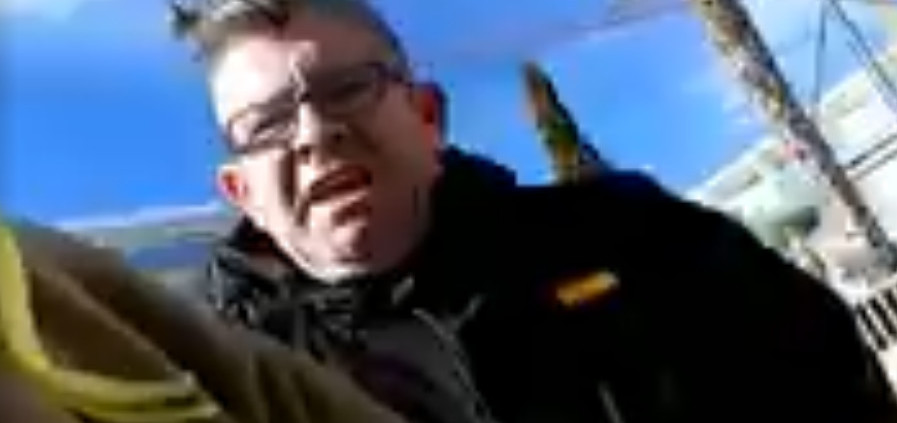 El vídeo que el seu fill va compartir a través de les xarxes socials, a mode de denúncia pública, i on es veu que l’home porta una bandera espanyola a la solapa, s’acaba quan se li tira al damunt per prendre-li el mòbil. És en aquest moment quan l’agredeix.