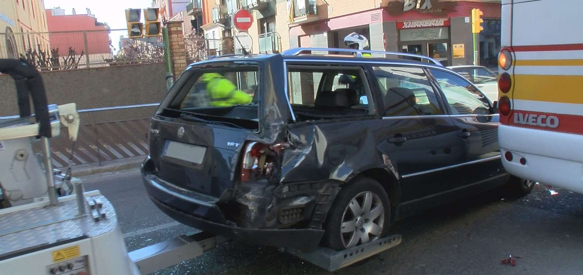 Als volts de les 10 h del matí s’ha produït una col·lissió en cadena en la que s’hi han vist involucrats tres vehicles: un autocar que anava buit, una furgoneta i un cotxe. Aquest últim ha resultat ferit per la topada que ha rebut per part de l’autocar, el qual ha perdut el control del vehicle en no funcionar-li els frens.